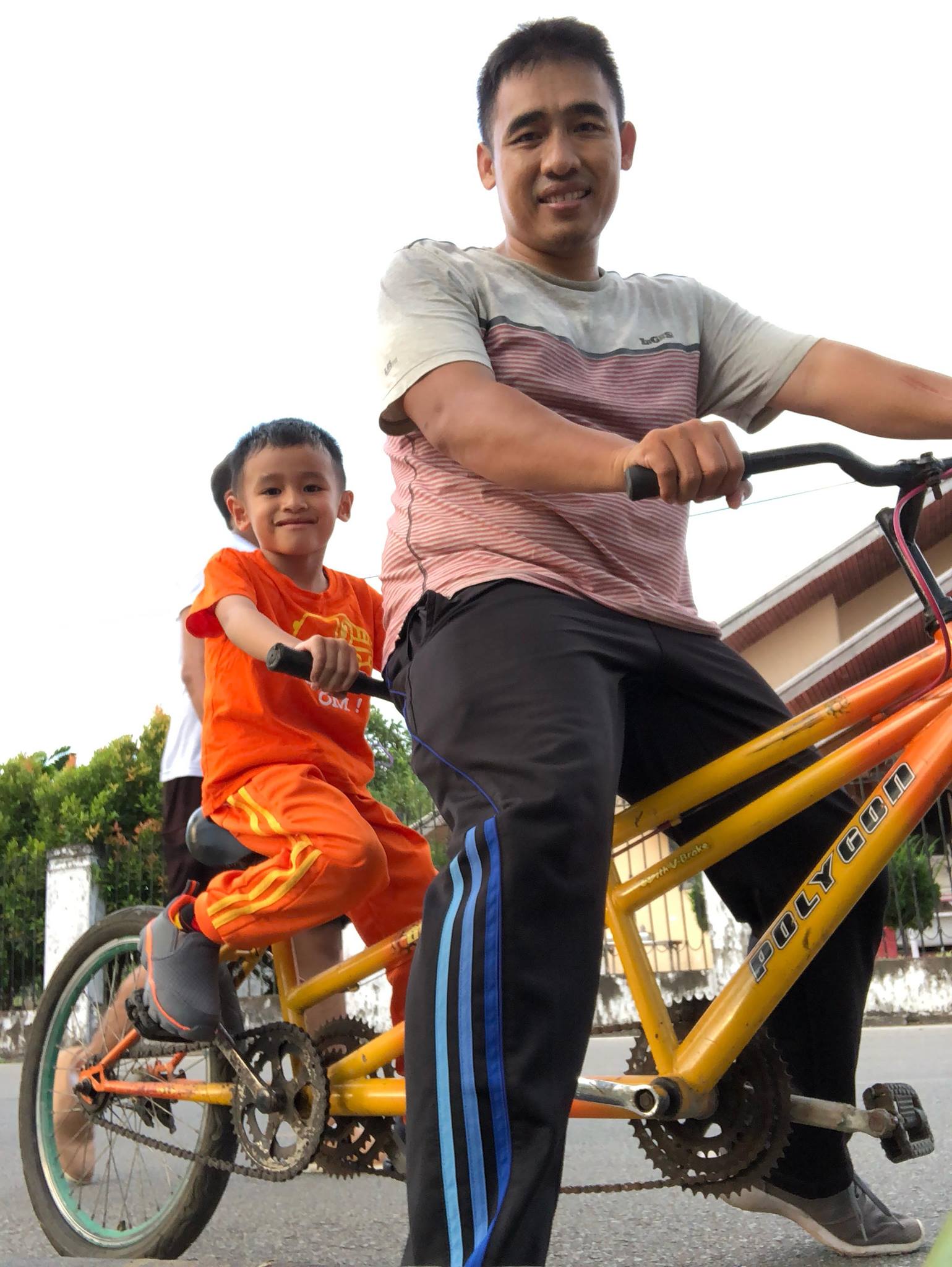 Akhir pekan itu, aku mengajaknya mencoba sesuatu yang baru. Kami menyewa sebuah sepeda tandem. Sebuah sepeda panjang dengan dua sadel dan dua set pedal. Sepertinya ini adalah sepeda yang dirakit untuk bersantai. Fatih duduk di belakang sedangkan aku duduk di depan sambil mengendalikan sepeda. Dengan kaki mungilnya dia mencoba mengayuh pedal yang memang agak sulit dijangkau. Tak terdengar keluh kesahnya. Dia justru tertawa dan sesekali berseru, “Abang bantu ayah ya!”.